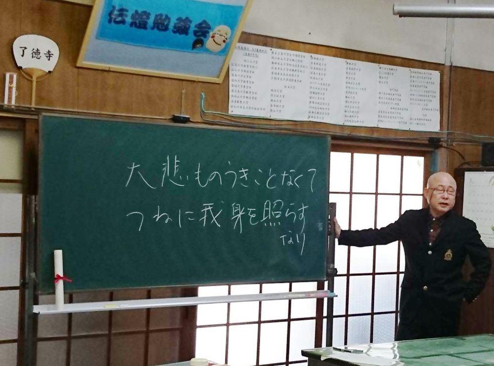 塾長は現役の住職で、授業あり、説教あり、相談ありと昔ながらの寺子屋スタイルで指導を行っています。
