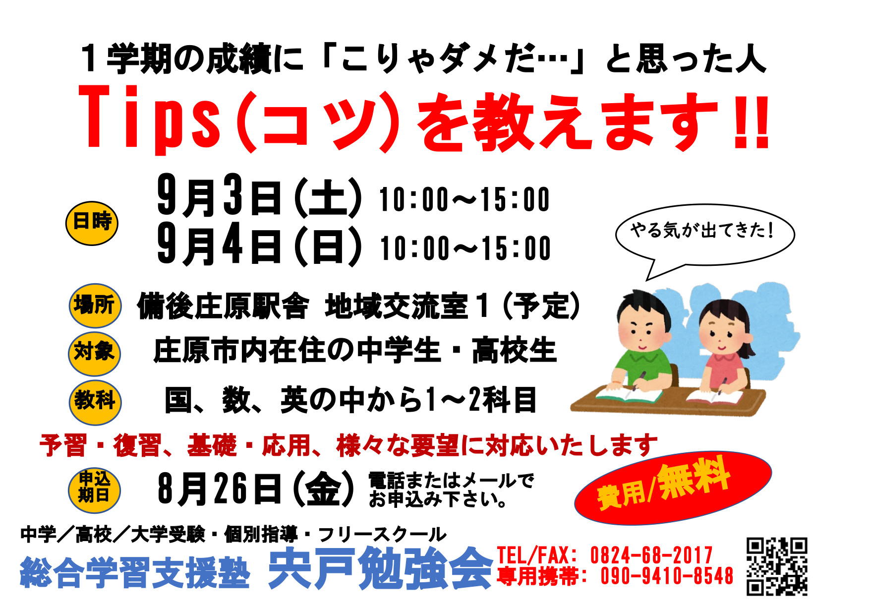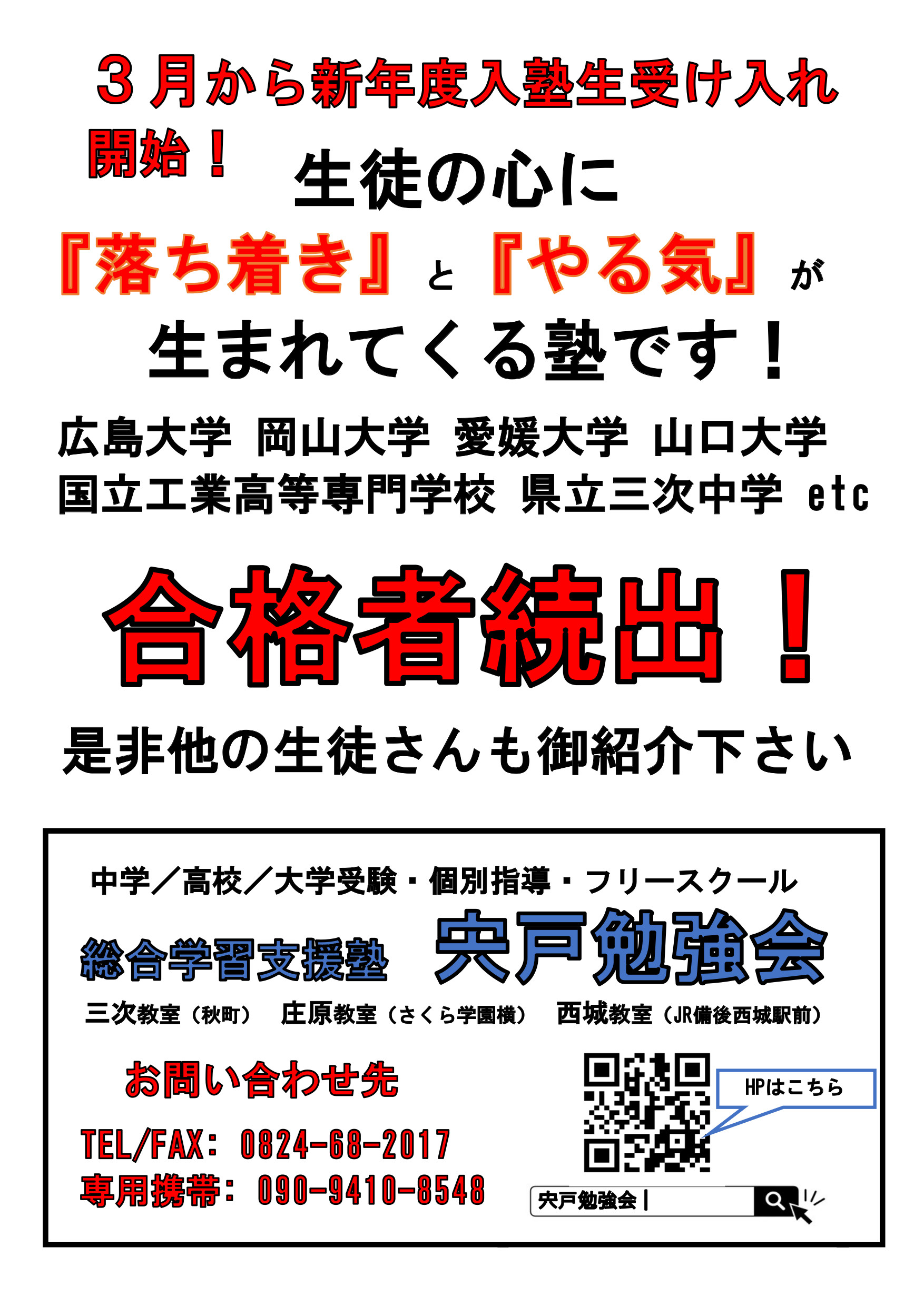 TEL/FAX: 0824-68-2017 塾専用携帯: 090-9410-8548